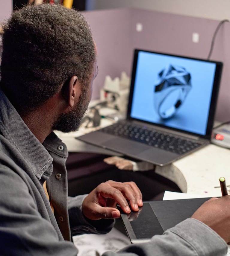في سوغة لتصميم وتجارة المجوهرات، نستخدم خدمات التصميم بمساعدة الكمبيوتر (CAD) المتقدمة لتحويل رؤيتك إلى واقع بدقة ووضوح. تتيح لك تقنيتنا مشاهدة نموذج رقمي مفصّل ونسخة ثلاثية الأبعاد لقطعتك المخصصة قبل أن نبدأ في الإنتاج.