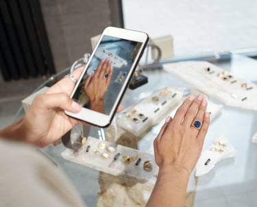 من خلال مكالمات الفيديو أو الدردشة عبر الإنترنت، يمكننا مناقشة أفكار تصميمك، واستعراض خيارات الأحجار الكريمة، واستكشاف الأنماط المختلفة—all in real time. تضمن لك هذه الخدمة المرنة والمريحة الحصول على نفس الاهتمام الشخصي والنصيحة الخبيرة كما في الاستشارة الحضورية، مما يجعل عملية التصميم المخصص متاحة للجميع وفي أي مكان.