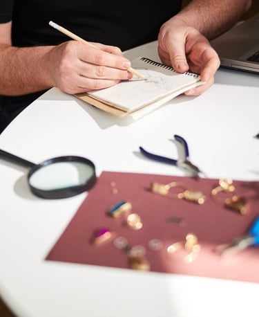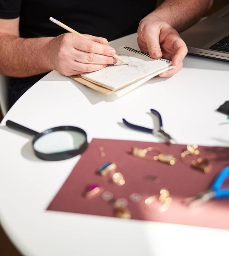 توفر هذه الخدمة تجربة سلسة وتعاونية. سنناقش أفكار تصميمك، ونشاركك الرسومات الرقمية وخيارات الأحجار الكريمة، ونرشدك خلال عملية الإبداع مباشرةً وبالوقت الفعلي. سواء كنت قريبًا منا أو في أي مكان حول العالم، فريقنا جاهز لمساعدتك على ابتكار قطعة فريدة تعكس قصتك.